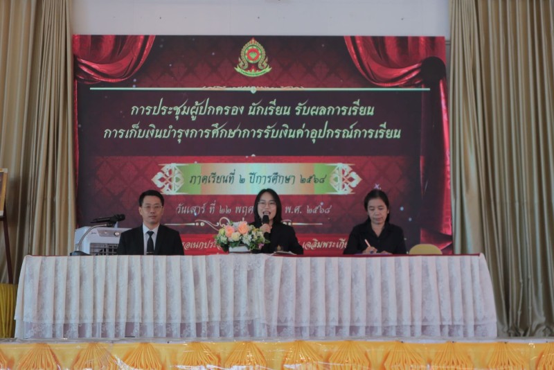 22 พฤศจิกายน 2568 การประชุมผู้ปกครอง นักเรียน รับผลการเรียน การเก็บเงินบำรุงการศึกษาการรับเงินค่าอุปกรณ์การเรียน ภาคเรียนที่ 2 ปีการศึกษา 2568