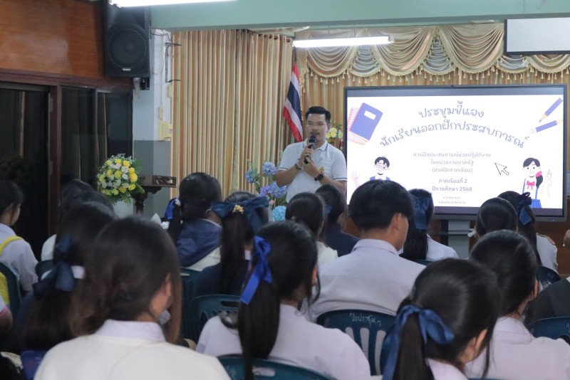 12 มีนาคม 2569 การประชุมชี้แจงนักเรียนออกฝึกประสบการณ์ การฝึกประสบการณ์ช่วยปฏิบัติงาน ในหน่วยงานภาครัฐ (ช่วงปิดภาคเรียน) ภาคเรียนที่ 2 ปีการศึกษา 2568