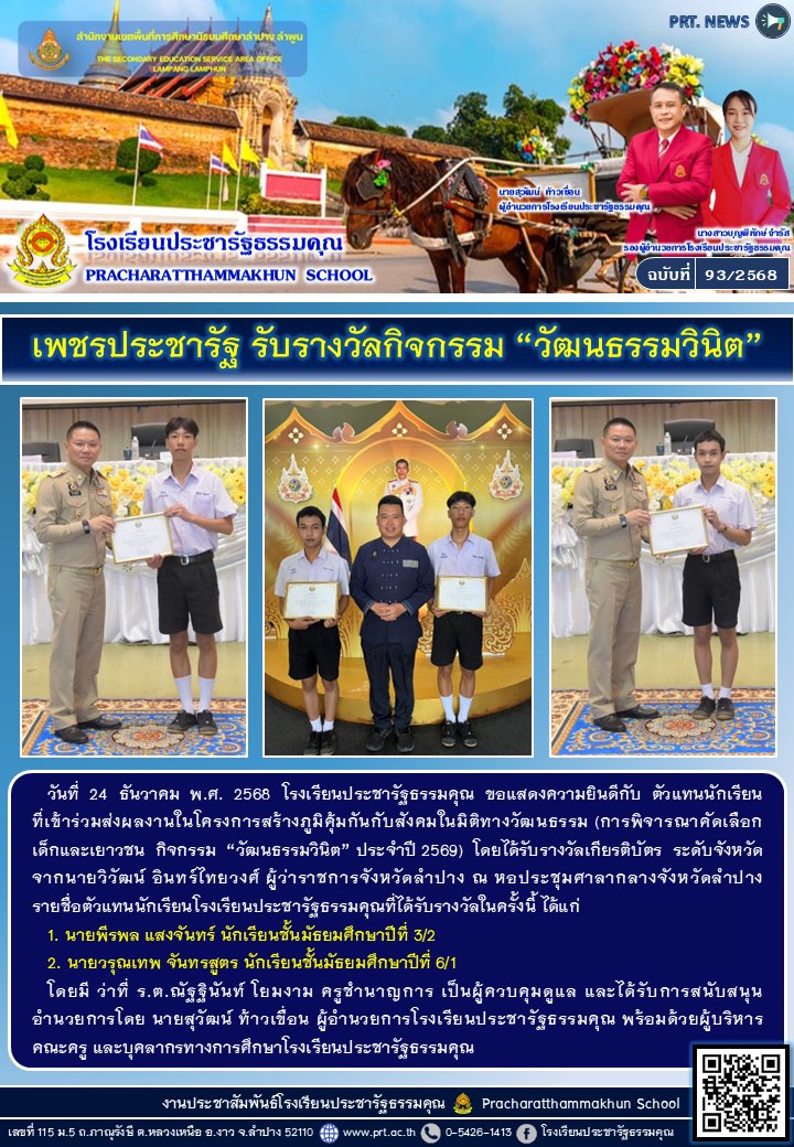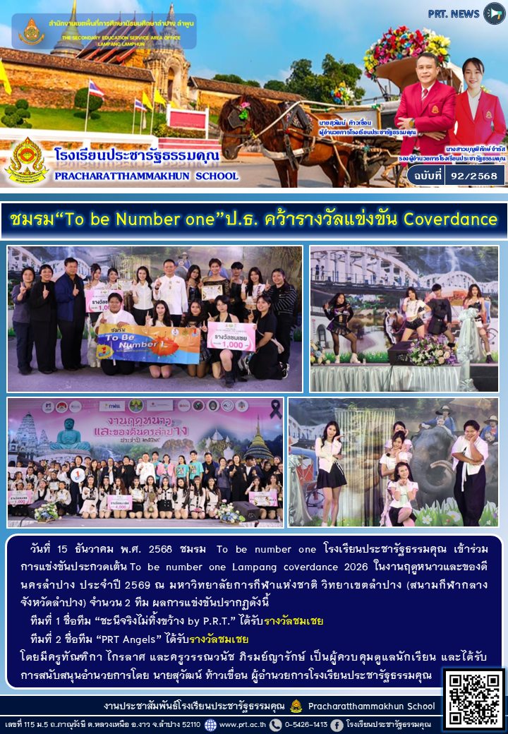 ชื่อผลงาน : ชมรม \"To be number one\" ป.ธ. คว้ารางวัลแข่งขัน Coverdance ชื่อนักเรียน : ชมรม TO BE NUMBER ONE โพสเมื่อ : 15 ธ.ค. 2568,22:49อ่าน 19 ครั้ง