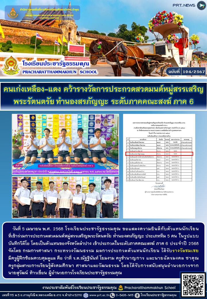 คนเก่งเหลือง-แดง คว้ารางวัลการประกวดสวดมนต์หมู่สรรเสริญพระรัตนตรัย ทำนองสรภัญญะ ระดับภาคคณะสงฆ์ ภาค 6