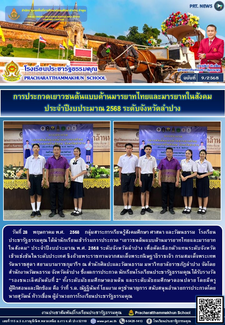 การประกวดเยาวชนต้นแบบด้านมารยาทไทยและมารยาทในสังคม ประจำปีงบประมาณ 2568 ระดับจังหวัดลำปาง