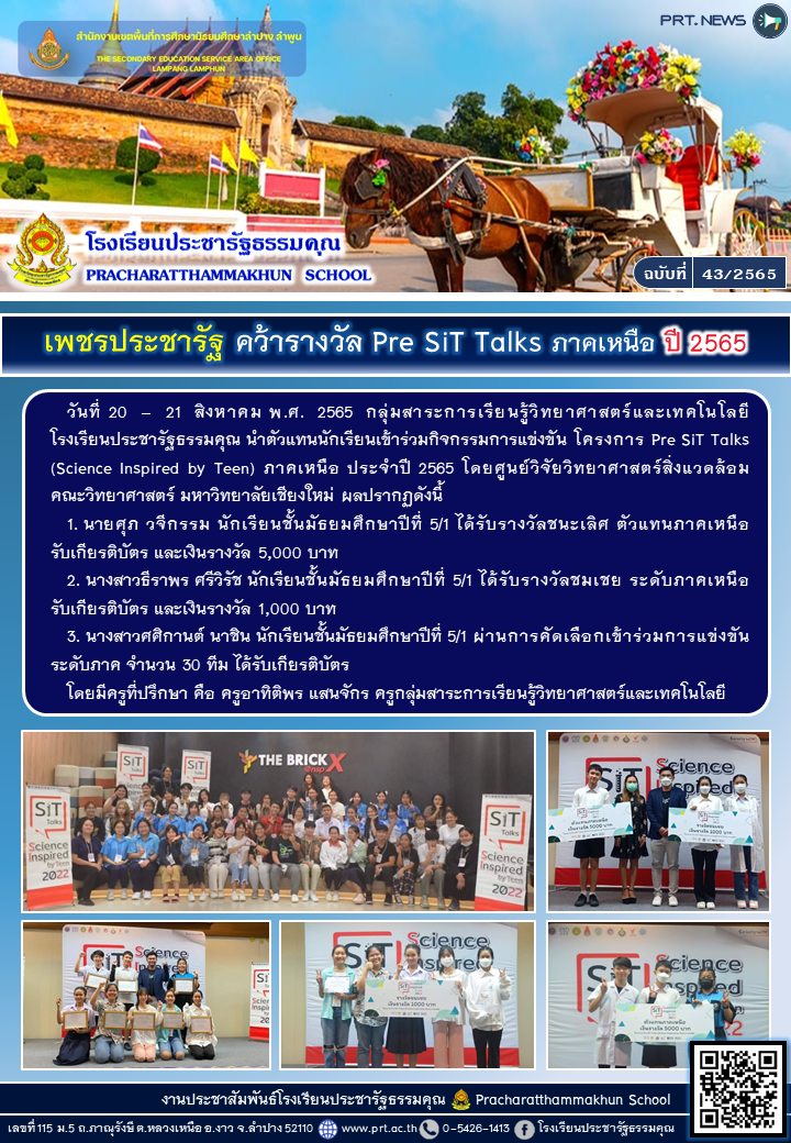 โครงการ Pre SiT Talks (Science Inspired by Teen) ภาคเหนือ ประจำปี 2565