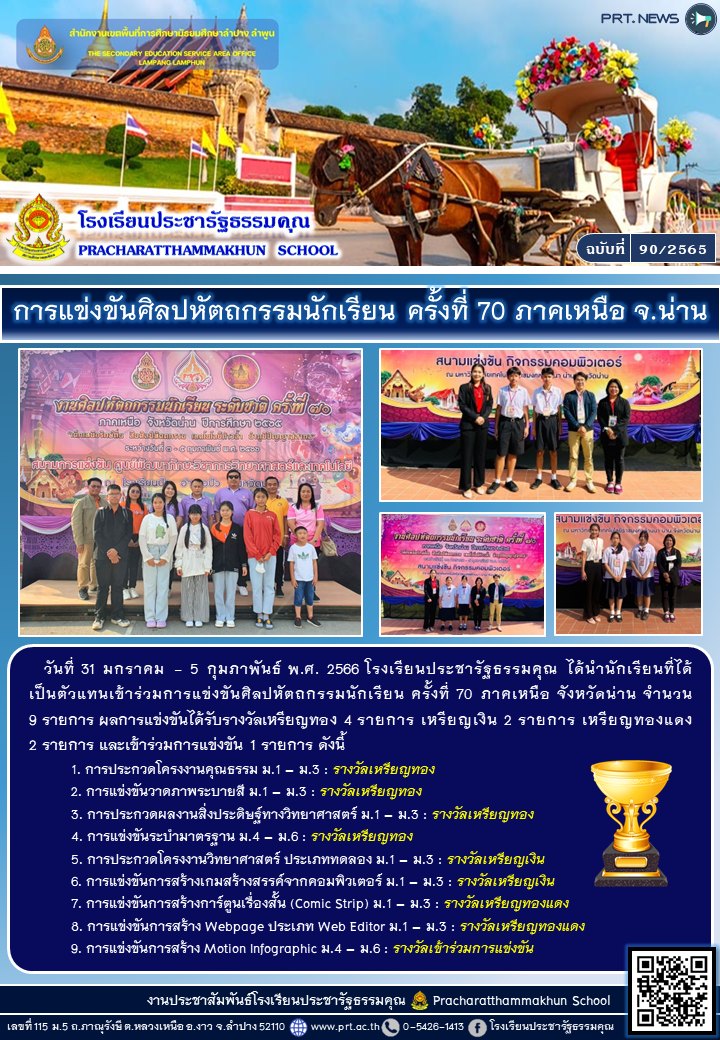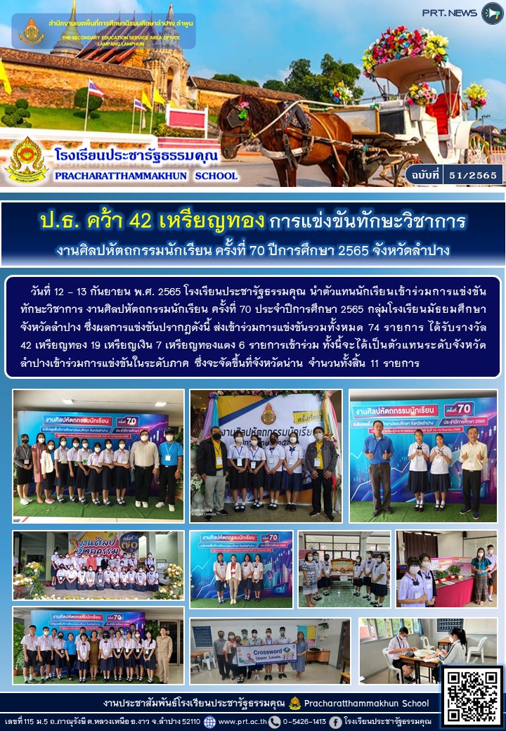 การแข่งขันทักษะวิชาการ งานศิลปหัตถกรรมนักเรียน ครั้งที่ 70 ปีการศึกษา 2565 กลุ่มโรงเรียนมัธยมศึกษาจังหวัดลำปาง