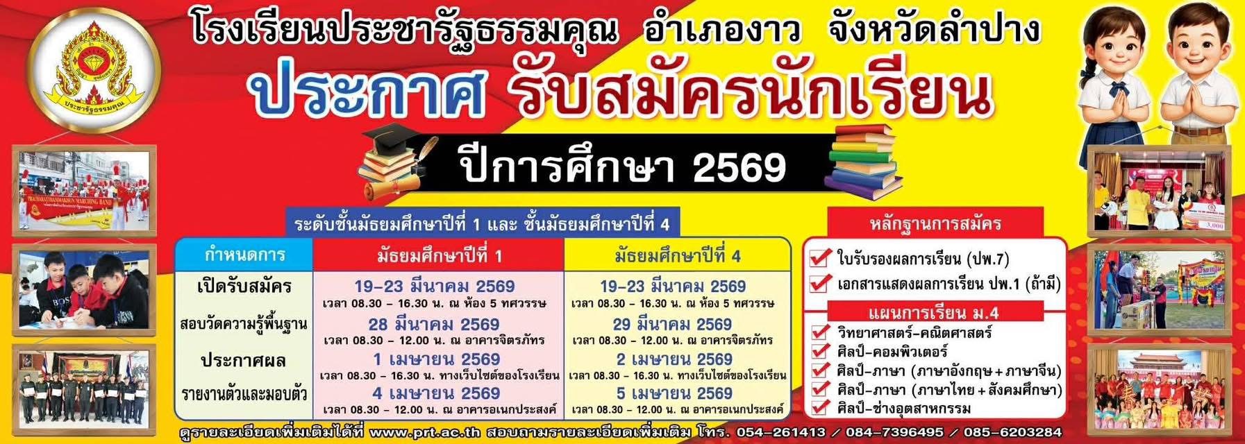 ประกาศโรงเรียนประชารัฐธรรมคุณ เรื่อง การจัดกิจกรรมพัฒนาผู้เรียน ปีการศึกษา 2568