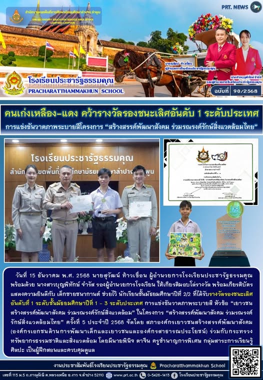 ชื่อผลงาน : ชมรม \"To be number one\" ป.ธ. คว้ารางวัลแข่งขัน Coverdance ชื่อนักเรียน : ชมรม TO BE NUMBER ONE โพสเมื่อ : 15 ธ.ค. 2568,22:49อ่าน 20 ครั้ง