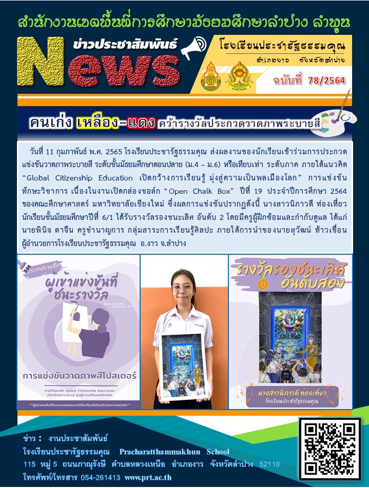 การประกวดวาดภาพระบายสี ระดับชั้นมัธยมศึกษาตอนปลาย (ม.4 - ม.6) หรือเทียบเท่า ระดับภาค ภายใต้แนวคิด "Global Citizenship Education เปิดกว้างการเรียนรู้ มุ่งสู่ความเป็นพลเมืองโลก" การแข่งขันทักษะวิชาการ เนื่องในงานเปิดกล่องชอล์ก "Open Chalk Box" ปีที่ 19 ประจำปีการศึกษา 2564 ของคณะศึกษาศาสตร์ มหาวิทยาลัยเชียงใหม่ |