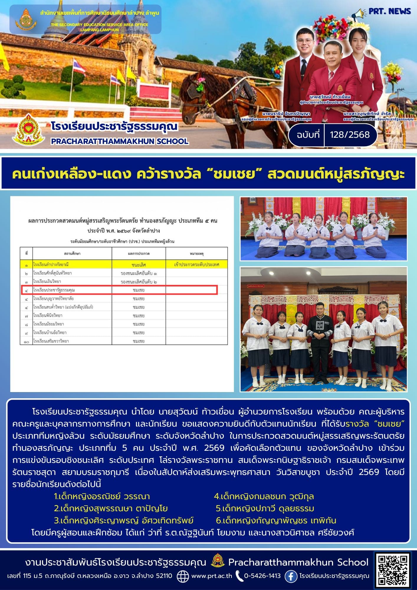 การประกวดสวดมนต์หมู่สรรเสริญพระรัตนตรัย ทำนองสรภัญญะ ประเภททีมหญิง 5 คน ประจำปี พ.ศ.2569 จังหวัดลำปาง